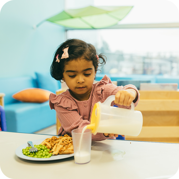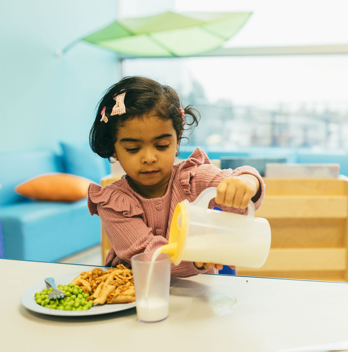 - Family-style dining to empower children to make choices and develop fine motor skills.