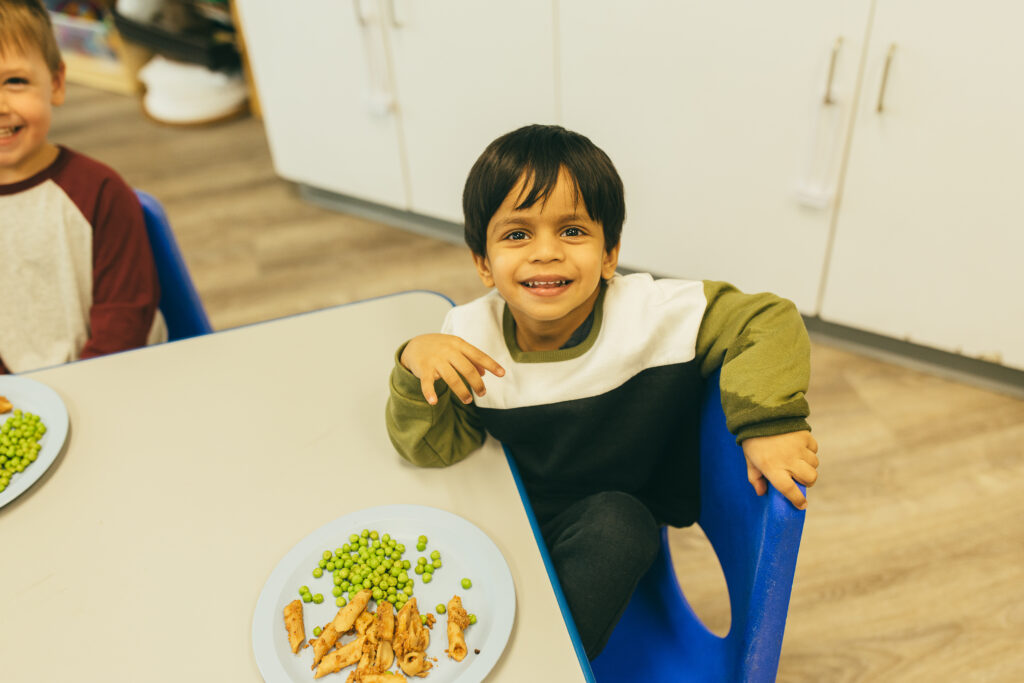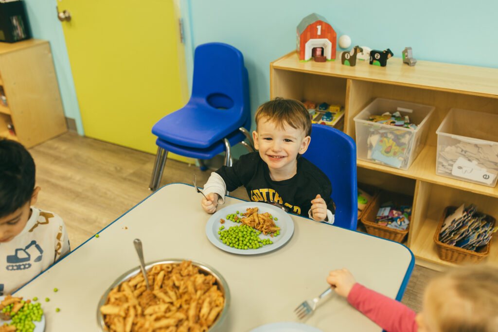 At Kids & Company, we enjoy meals family-style. Main dishes and sides are placed in serving bowls on the table so children can serve themselves. This encourages them to develop independence, confidence, and social skills, while learning to make their own food choices and take pride in what they eat.