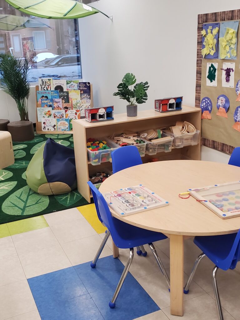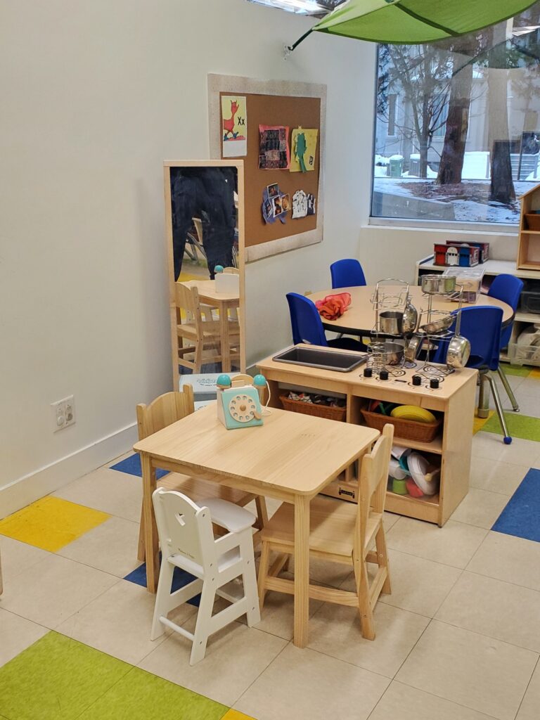 Families love the bright, colourful classrooms filled with natural light from large windows and the playground’s all-weather awning that allows outdoor play rain or shine. The nearby nature trail is perfect for infant stroller walks, and inside, families appreciate the convenient coat racks and stroller parking.