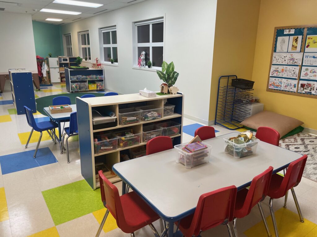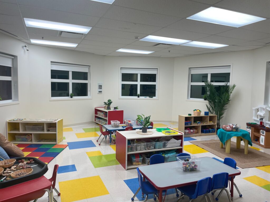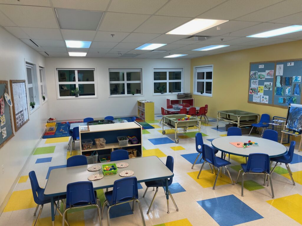 Families appreciate the large windows and high ceilings that create a fresh and spacious learning environment. A large outdoor playground gives children room to play and explore all year long.