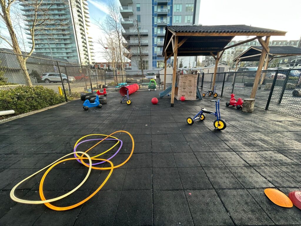 Families love the big, bright windows that make every classroom feel warm and inviting. The shady, fenced-in playground with a toy house and other play equipment, along with easy access by car or transit, makes this centre especially convenient.