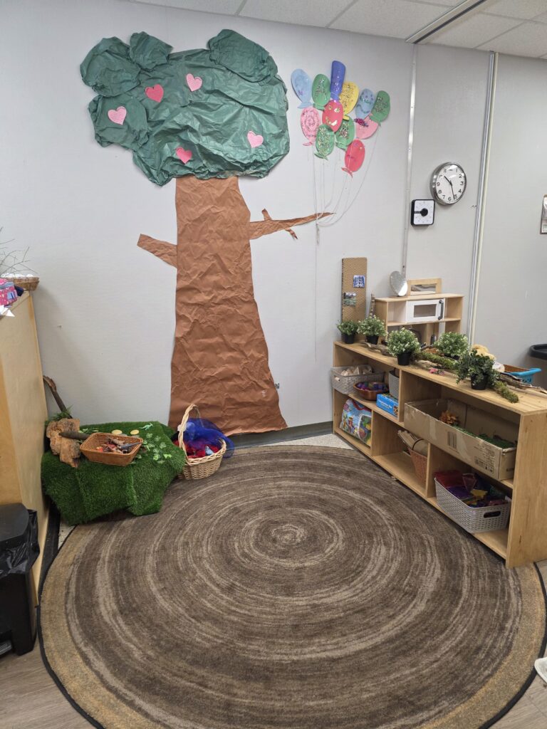 Families love the safe and engaging play space for infants and toddlers, along with the surrounding forest areas where children explore, play, jump, and climb. Access to the school playground and large field gives children even more room for outdoor discovery.