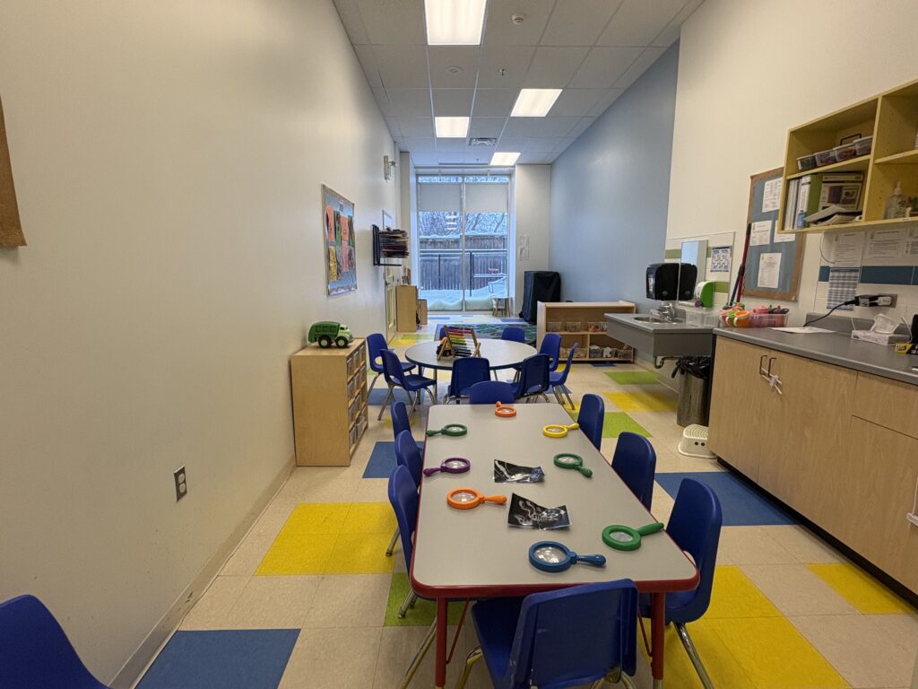 Families enjoy the classrooms with windows overlooking either the outdoors or the open learning space. The large, private playground is filled with fun toys and offers year-round outdoor enjoyment.