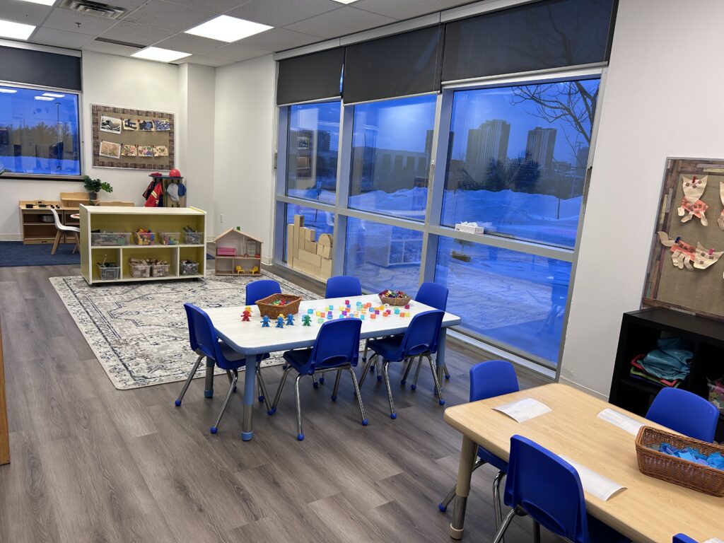 Families love the large windows that brighten the classrooms and allow children to see their parents arriving at pick-up. The playground features a jungle gym climber, sandboxes, and room for gross-motor play, all set in quiet natural surroundings where children sometimes spot Canadian Geese and Red-Tailed Hawks.