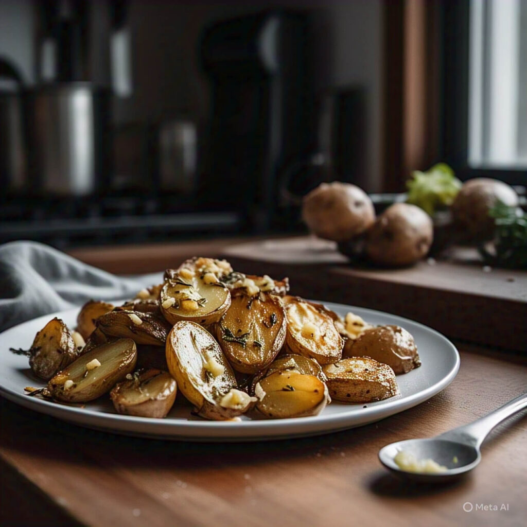 - Place potatoes in a bowl with the olive oil, garlic and paprika; toss until the potatoes are well coated. Transfer the potatoes to a sheet pan and spread out into 1 layer. Roast in the oven for 45 minutes to 1 hour or until browned and crisp. Flip twice with a spatula during cooking in order to ensure even browning.