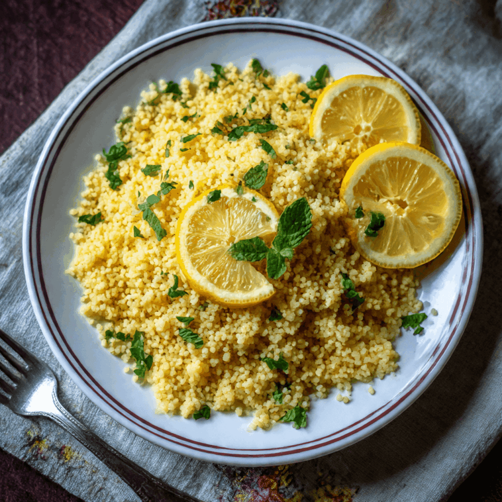 - Fluff couscous with a fork and stir in lemon juice.