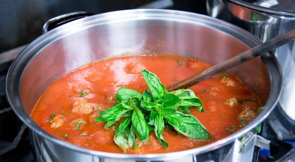 - Add meatballs to tomato sauce.