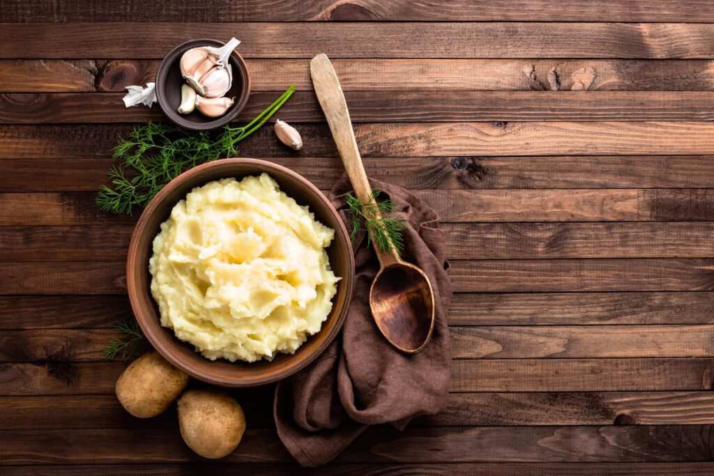 - Drain and add butter and milk while mashing.