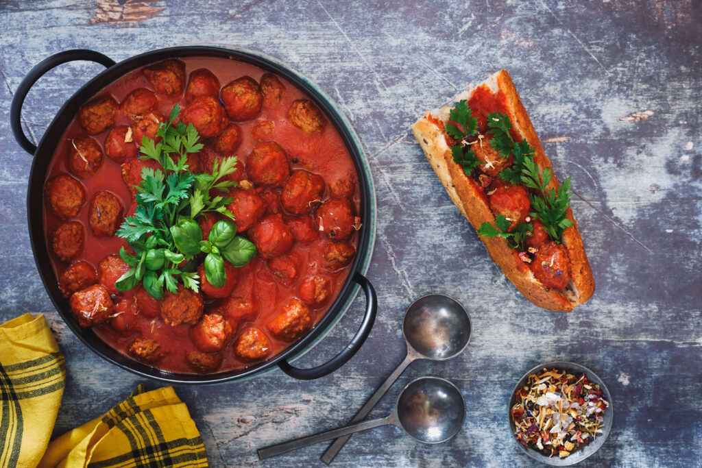 - Roll meat into small golf ball sized meatballs. Place about 1 inch apart on a parchment lined baking dish.
