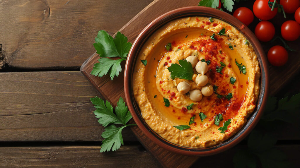 - Try adding a drizzle of olive oil, crispy chickpeas and parsley on top of the hummus for some extra crunch and colour!