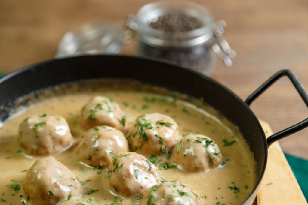 Swedish meatballs are a wonderfully satisfying food this time of year. They’re rich in flavour and warm — the ultimate comfort food. While traditional Italian meatballs are often served in a tangy, thick tomato sauce, Swedish meatballs have an entirely different flavour profile. Swedish meatballs are slightly smaller than traditional meatballs — think the size of a golf ball — so that they can be easily picked up by a toothpick and popped into your mouth. As for the sauce, Swedish meatballs are cooked in a rich, creamy gravy that is most often created from bone broth and cream.<br />