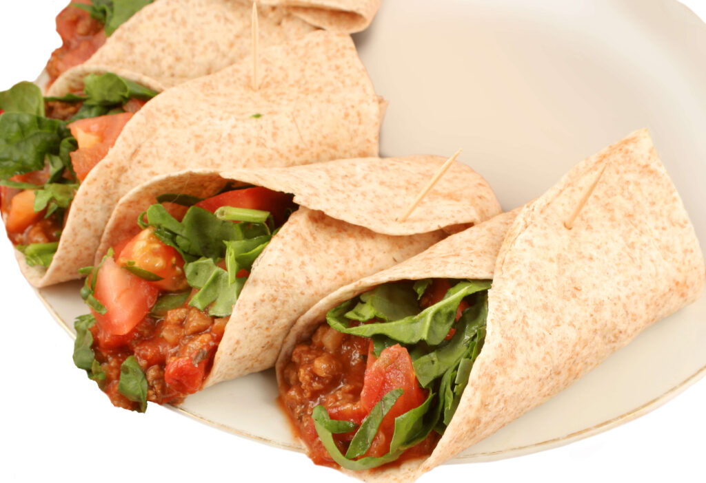 - Place taco mixture on whole wheat tortillas and top with shredded cheese and your option of sour cream, salsa or any other toppings you desire.