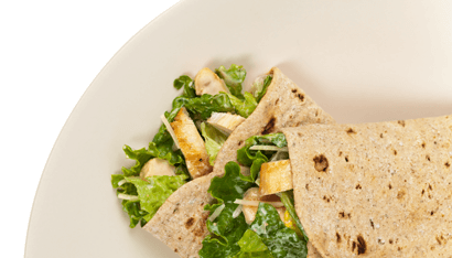 - Wrap: Chicken Caesar wrap with a delicious and healthy mix of grilled chicken, Caesar dressing, lettuce, and a whole-grain tortilla