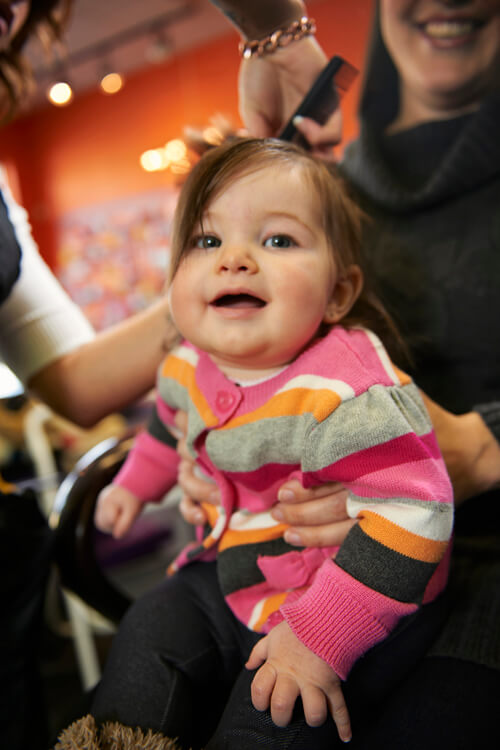 You might be wondering what will happen if your baby is fussy during their haircut. Our specially trained stylists are masters of distraction and are very fast at what they do. If problems arise, our stylist may ask you to assist by holding your child or distracting them. And when all else fails, we have lollipops! Most importantly, we understand and are here to help.